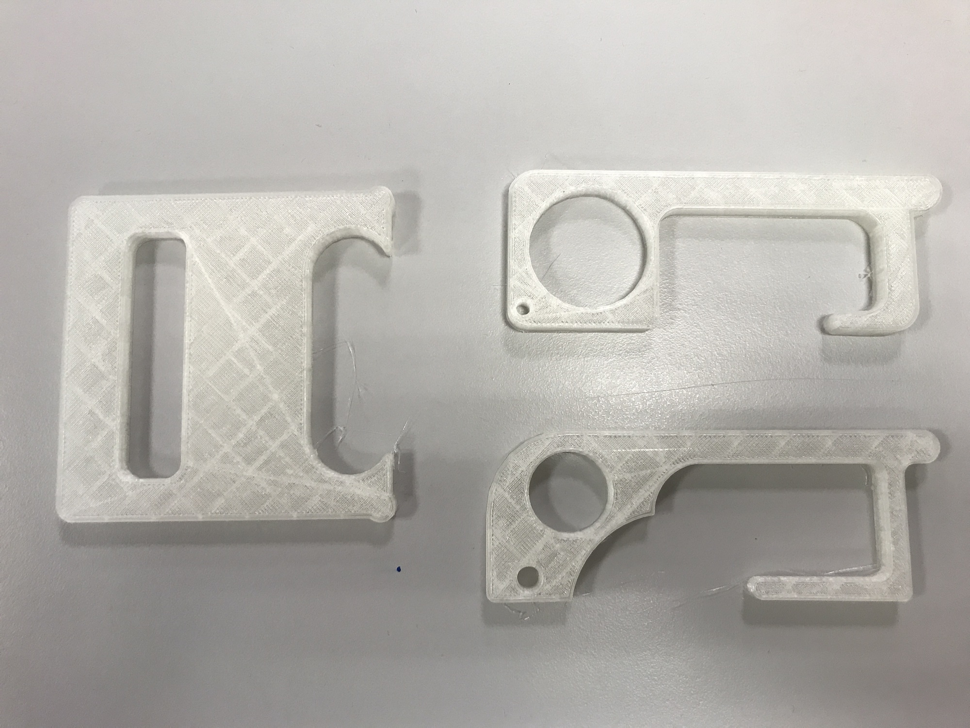 Comme on peut le voir sur la vue avant / après, la clé initiale, déjà commercialisée, ne permettait pas d’ouvrir une porte battante avec poignée cylindrique sans risquer de déraper. La majorité des prototypes réalisés par les élèves ont permis de résoudre ce problème…