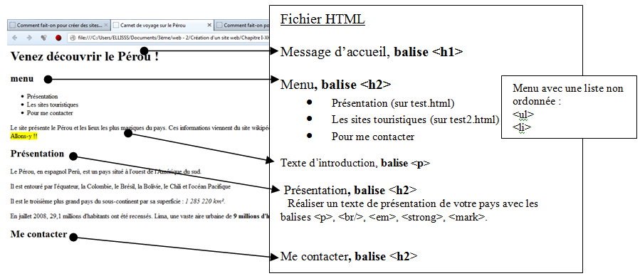 Toujours dans le fichier « Site-film-3A-nom1nom2.html », préparer le contenu du site qui va présenter votre vidéo.