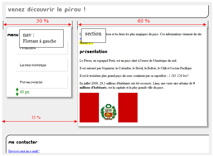 A faire : Modifier le fichier «style.css » pour mettre en valeur les différentes balises « header, nav, section et footer ».