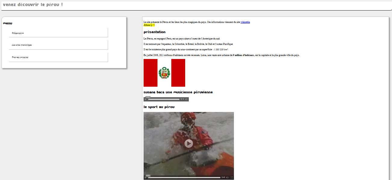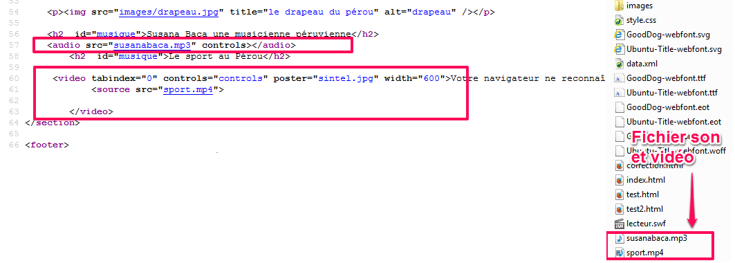 A faire : Insérer une musique et une vidéo sur votre fichier HTML qui se nomme test.html dans la rubrique "présentation".