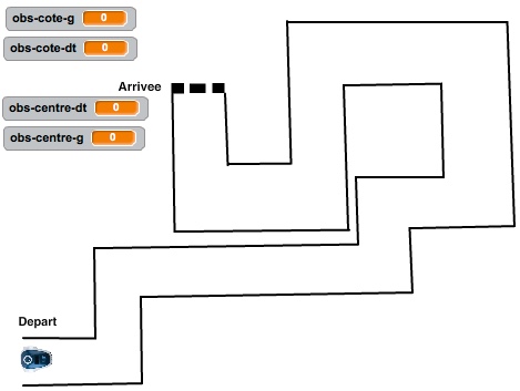 -1- Interdiction de couper une ligne noir + Déplacements libres. -2- Interdiction de couper une ligne noir + Symboliser les déplacements d'une voiture. -3- Interdiction de couper une ligne noir + Symboliser les déplacements d'une voiture + Obligation de détecter les murs avec un capteur. -4- Interdiction de couper une ligne noir + Symboliser les déplacements d'une voiture + Interdiction de toucher un mur ou la couleur noire (vous devez donc changer de capteur…). |