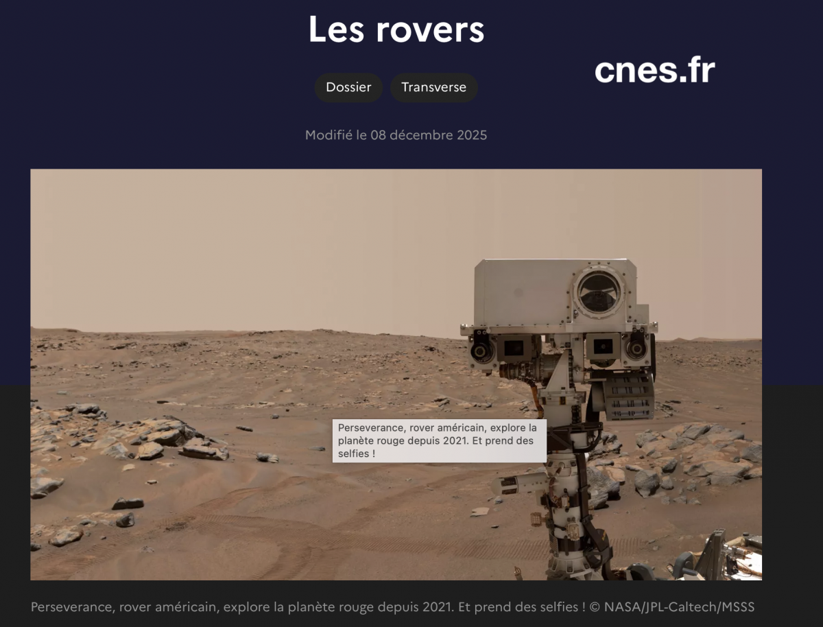 Explorer Mars avec un rover : utile ou inutile ? Voir l'image agrandie Situation problème : « Envoyer des robots sur Mars ne sert à rien. Cet argent pourrait être utilisé sur Terre. » Citation entendu quelque part a Vergt… Les Rovers et l’exploration spatiale .– activité de découverte – 2- Découverte du Rover Perseverance3- Comment fonctionne le rover ?4- Communication Terre ↔ Mars5- Autonomie du roverDossier CNES : les rovers expliqués simplement Par profadm|2026-04-03T08:56:41+01:00avril 3rd, 2026|sequences-4eme|0 commentaire Share This Story, Choose Your Platform! facebooktwitterlinkedinreddittumblrpinterestvkEmail À propos de l'auteur : profadm