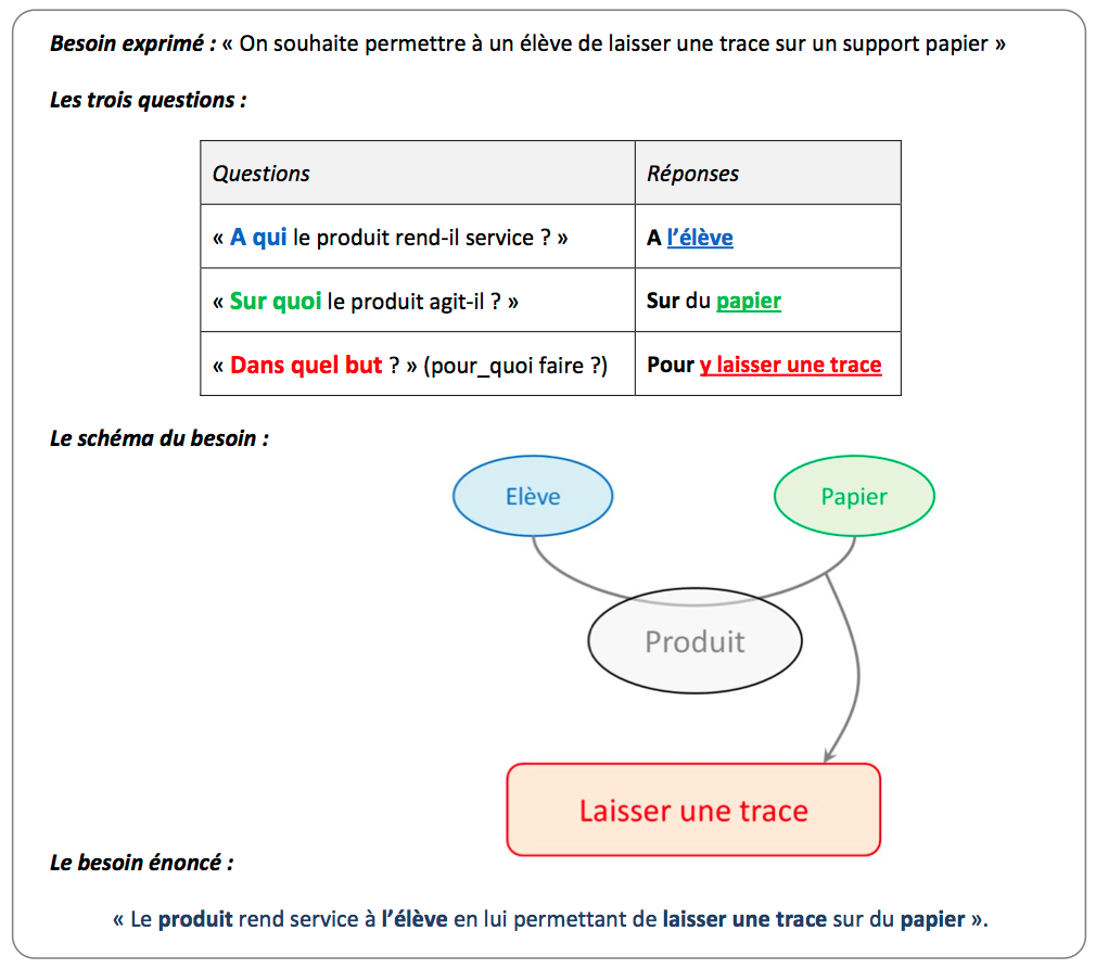 -1- Pour verbaliser le besoin il faut répondre à trois questions : (étudiez l'exemple ci dessous)