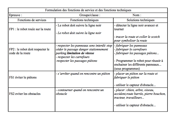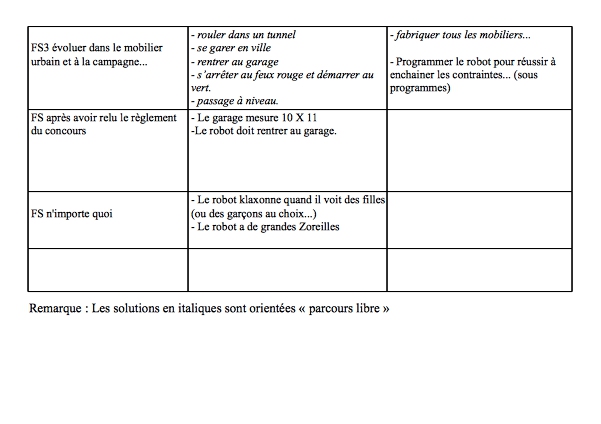 Voici un tableau de synthèse détailant les fonctions et solutions techniques après mise en comment des différentes équipes :