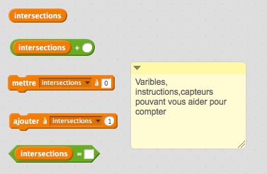 Plusieurs possibilités pour compter avec une variable. Raisonnez autour de ces blocs variables et capteurs, ou d'autres...
