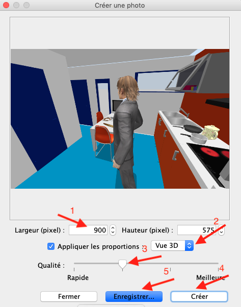 - Ajuster la vue pour obtenir une vision la plus intéressante de votre appartement.