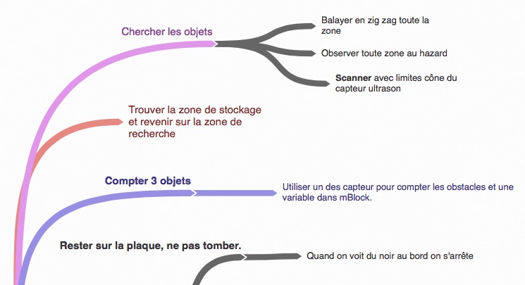 Comment détecter trois objets, les compter et les rapporter dans une zone de stockage ?