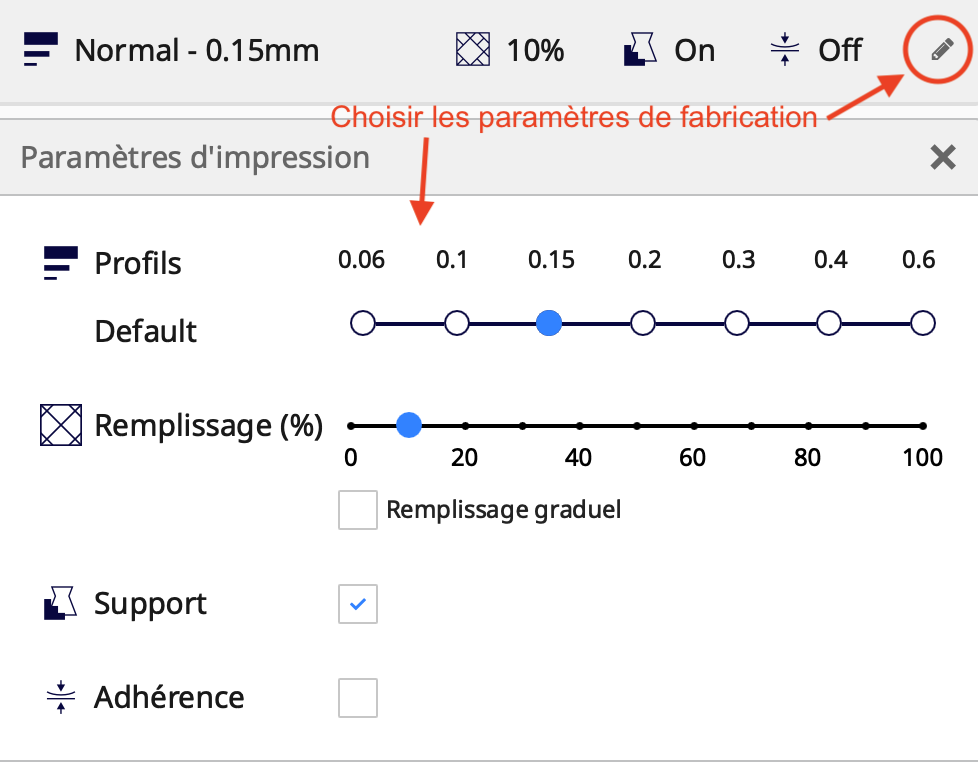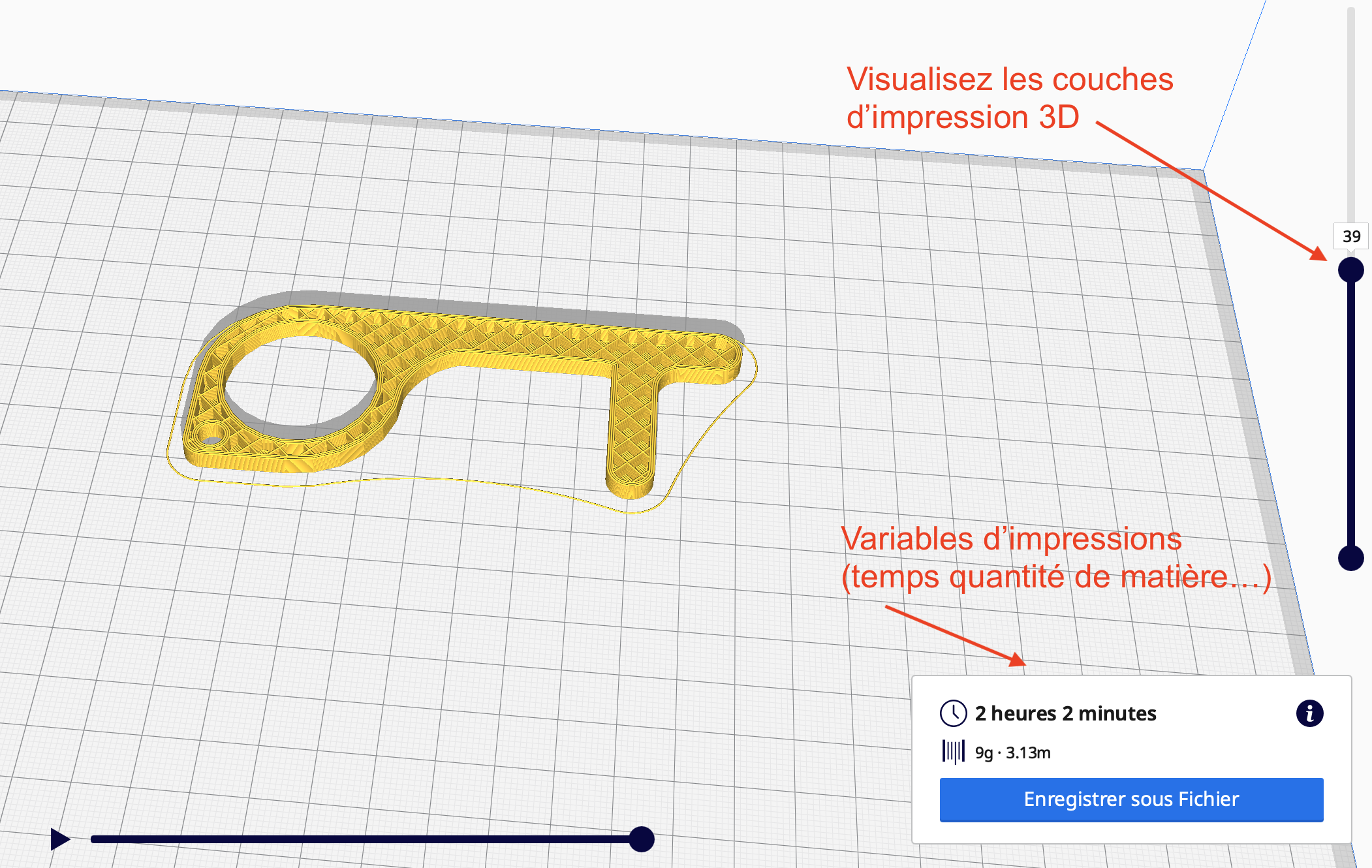 3.5 - Découpe. Temps, quantité de matière et couches d'impression 3D.