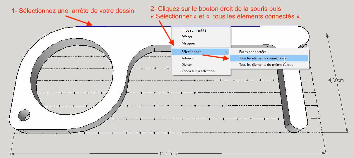 2 - Sélectionner l'ensemble de tous les contours en faisant un triple clic sur votre fichier ou en suivant la méthode ci-dessous.