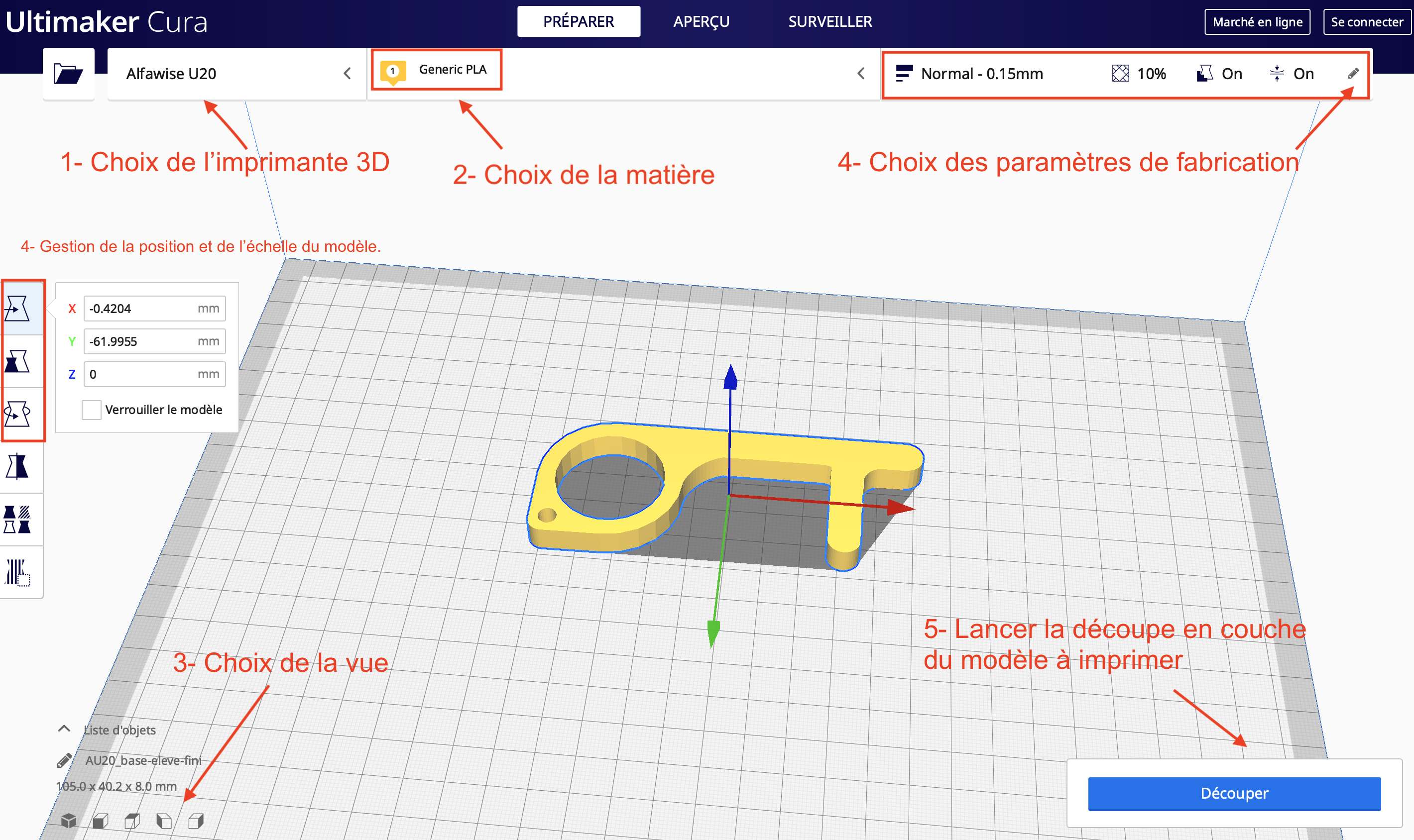 Activité 3 : Préparer l'impression 3D avec le "Slicer" Cura. (Slicer : Logiciel de découpage en tranche)